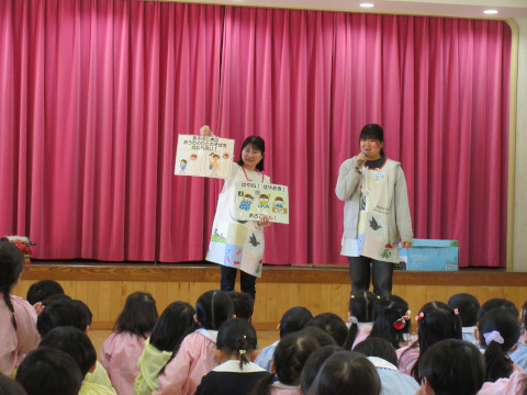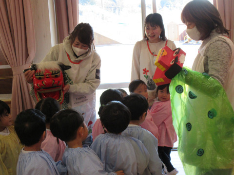 最後に、子どもたち一人一人が獅子舞に頭を噛んでもらい、邪気を追い払って無事に1年間過ごせるようにお祈りしました。