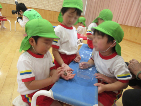 カタツムリを観察したり手に乗せたりして楽しみました!